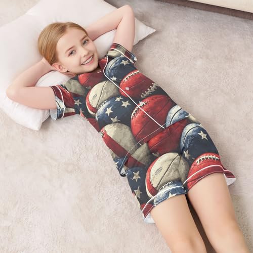 sought-after ! ALAZA Rugby Ball Star American Football Satin Pajamas Set Short Sleeve Button Down Sleepwear Summer Pjs 2 Piece