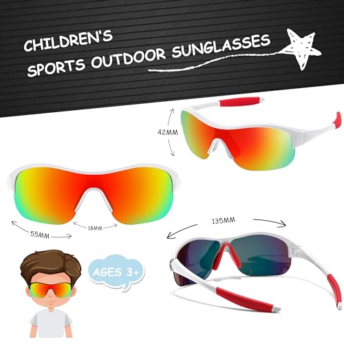 FEISEDY Polarized Sports Sunglasses for Kids Youth Baseball Cycling Running Glasses for Boys Girls Age 3-12 B0142