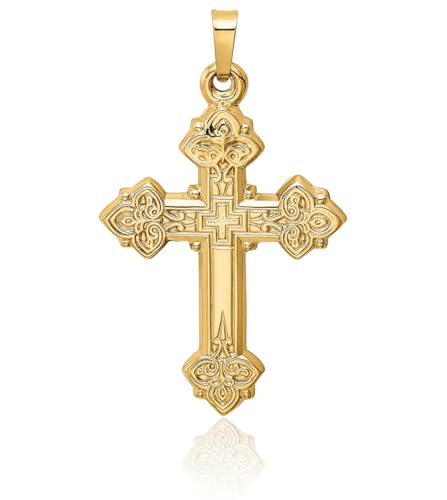 More information about IceCarats 14K Solid Yellow Gold Budded Holy Cross Necklace Religious Chain Pendant Jesus Christ Christian Charm