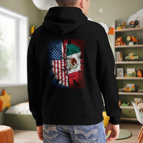 Kids Retro Half Mexican And American Mexico America Usa Flag Boys Girls Lightweight Kangaroo Pocket Fleece Hoodies