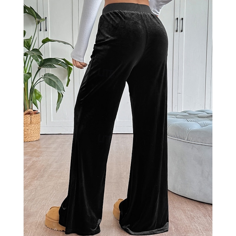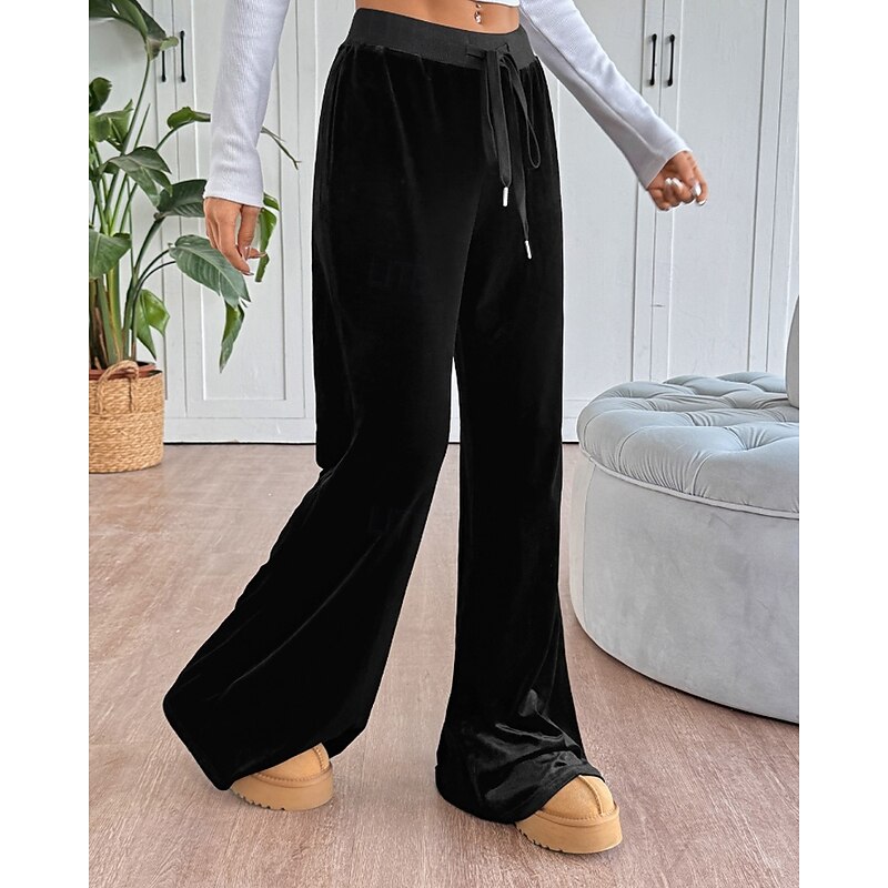 Why Choose Women's Wide Leg Slacks Streetwear Casual Full Length Natural Plain Elastic Drawstring Design snug Street Holiday Daily Wear Black Fall Regular Fit?