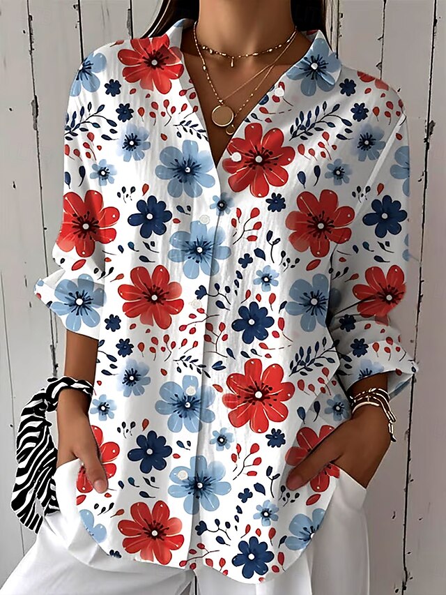 Why Choose Women's Shirt Button Down Tunic Shirt Collar Long Sleeve Floral Graphic Vintage Tropical Daily Regular Tops Work Daily Holiday s Print Red Blue Green Spring Fall?
