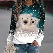 Women's Pullover Sweater Teal Winter Polar Bear Graphic Long Sleeve Crew Neck Holiday Festive Casual Comfort Fit Snowflake Pattern Plus Size