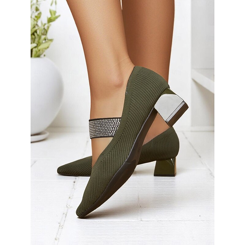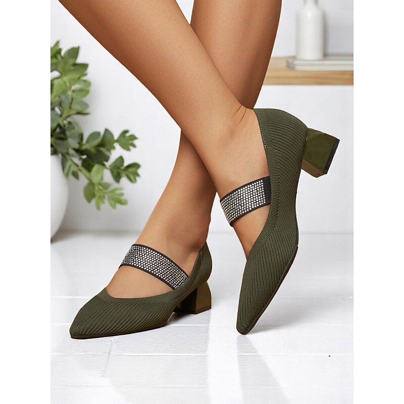 This Women's Army Green Knit Block Heel Pumps with Rhinestone Elastic Strap, contemporary Comfortable Office Shoes for Teachers, Receptionists and Daily Workwear combines elegant design with practical functionality. Every detail has been carefully considered to ensure you get the best possible experience. The first-class construction means this product will serve you well for years to come.