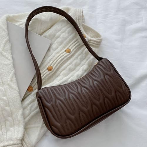 Shoulder Handbag Women PU Solid Color Underarm Coffee