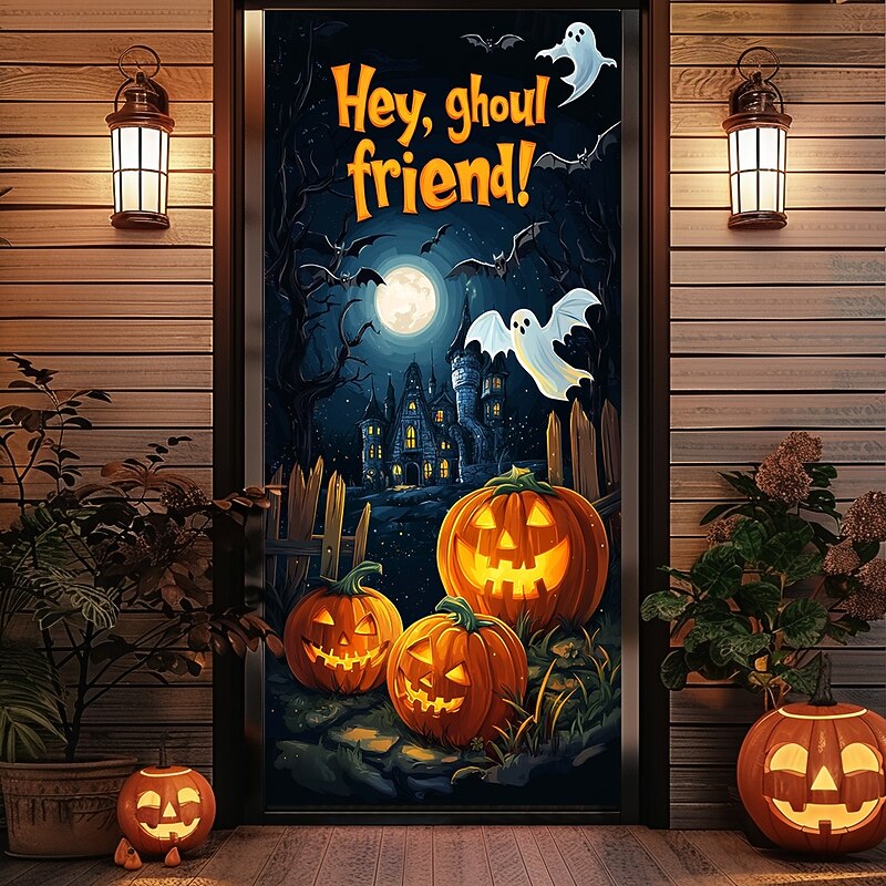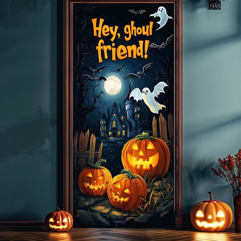 Highlights Celebrate in Spooky Style! Transform your Halloween with our Jack O' Lantern Pumpkin Door Covers . Featuring a playful mix of pumpkins, bats, and scarecrows, this door tapestry adds festive charm to both indoor and outdoor spaces. Key Features: Festive Design: Includes vibrant Jack O' Lanterns, spooky bats, and cheerful scarecrows for a fun Halloween look. Versatile Application: Ideal as a door curtain, backdrop, or banner for front doors, parties, and seasonal decor. High-Quality Fabric: Made from durable, tender material to maintain its vibrant appearance throughout the season. Easy Installation: Comes with all the necessary accessories for a quick and easy setup. Farmhouse Friendly: Complements various decor styles, including farmhouse, for a cozy and inviting touch. Make your Halloween celebrations stand out with this eye-catching and versatile door cover! Perfect for everyday use. finest materials and excellent craftsmanship ensure long-lasting durability.