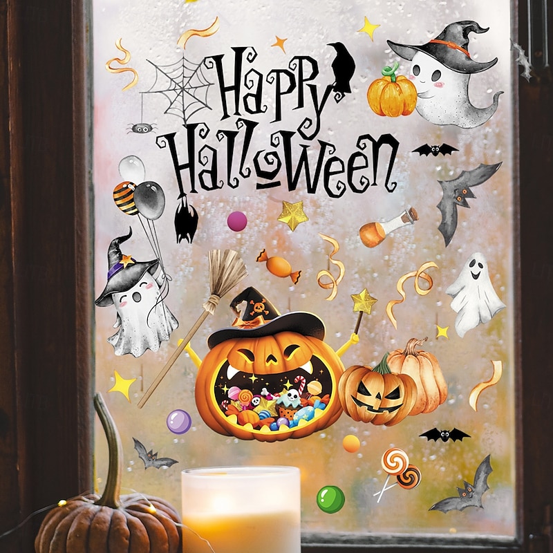 $8.49 - Halloween Window Clings Decoration Double-Sided Visible Pumpkin and Ghost Static Cling Stickers, Removable Glass Decals for Halloween Window Decor 2025. Shop for cheap Halloween Stickers online? Buy at lightinthebox.com on sale today!