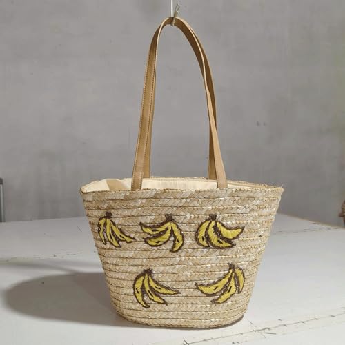 Why Choose Banana Purse Straw Woven Banana Embroidered Bucket Bag Large Shoulder Bag Trendy Fruit Purse for Women?