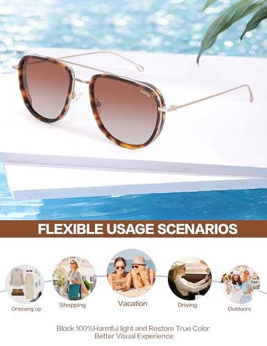 BIRCEN Acetate Polarized Sunglasses for Women: UV Protection Shades - Vintage Frame Aviator Sun Glasses for Vacation Beach