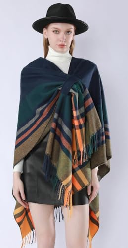 Knitted Pashmina Shawl Wrap for Women Cross Open Front Blanket Winter thermal Poncho Capes Cardigan Gradient Checkered Coat
