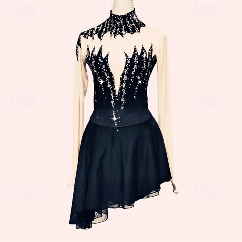 Why Choose Figure Skating Dress Women's Girls' Ice Skating Dress Black Red Thumbhole Asymmetric Hem Mesh Spandex Stretchy Training Practice Professional Skating Wear Thermal heated enduring Crystal / Rhinestone?