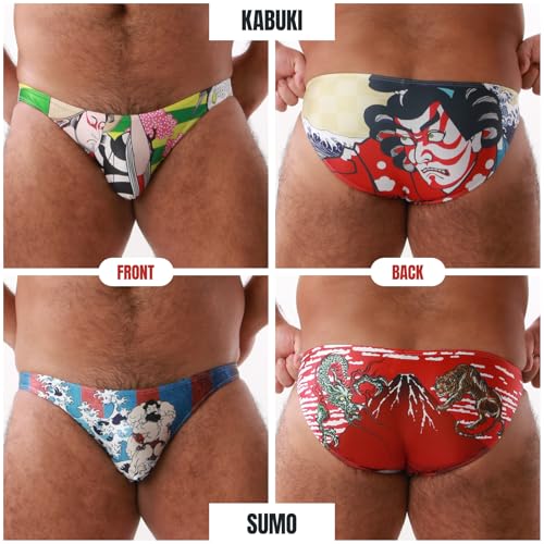 PROPAGANDA Premium Japanese Swimwear hasty-Drying, Stretchy Fabri Kabuki & Sumo Patterns Men's Exotic Bikini Brief