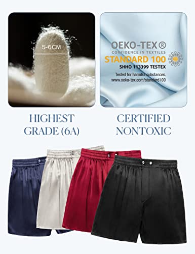 • 100 MULBERRY SILK, GRADE 6A: The mens silk underwear is made by luxury highest quality 19 momme 100% pure mulberry silk charmeuse, elegant, luxurious and gorgeous. We use 5-6cm splendid silk cocoons which means this is the highest grade silk level chosen to produce this luxury silk boxers.