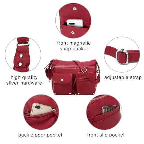 Fabric type: Faux LeatherOrigin: ImportedClosure type: ZipperLining: Polyester[Material] - excellent washed faux leather made with special technique; Eco-friendly, animal cruelty free; The material is ultra-silky, pliable and smooth; Can be folded but can't stand by itself; Anti scratch and water resistant; Great quality polyester inner lining; Dirt resistant, easy to clean, and doesn't get easily worn out[Dimensions] - Bag: 14 x 5.5 x 9; Weight: 0.99 lb; Detachable and adjustable shoulder strap drop: 27; Can fit an iPad (10.2), phone, cute wallet, makeup set, small book, mask, accessories etc. It goes with any outfit. Well made womens purses that can be a fantastic gift choice for womens and ladies[Design] - Minimalistic design; Durable and lightweight; Silver-toned hardware; Well made fashion designer bags; Zipper works smoothly; Perfect size, not too big and not too small; Top zipper closure for better security; It can be used as women's handbag, satchel bag, leather crossbody bag, women's crossbody handbags, shoulder bag, crossbody purses for women, trendy top handle purse, fashion tote bag, etc.[Lots of Pockets] - 1 main compartment, 2 front zipper pockets, 1 front snap pocket, 1 front slip pocket, 1 back zipper pocket, 1 inner zipper pocket, 2 inner slip pockets, 2 side zipper pockets; Spacious enough to store your daily essentials and keep your belongings organized[Occasions] - Style is perfect for office, party, date, shopping, work, travel, summer, vacation and everyday use; Perfect gift for mom, wife, family and friends on any event such as birthday, anniversary, Christmas, thanksgiving, valentines day, holidays, or any celebration day. Perfect for everyday use. High quality materials and excellent craftsmanship ensure long-lasting durability.