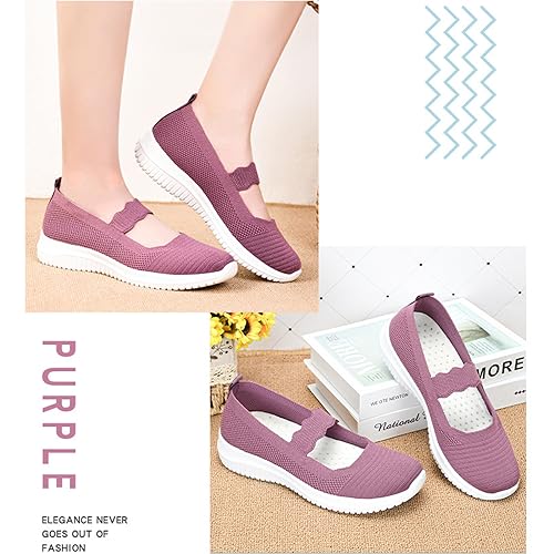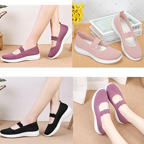 Women's Knitted Mesh Lightweight Walking Sneakers,Casual Lightweight Arch Support Slip On Orthotic gentle Sole Shoes Breathable Non Slip Nurse Work Shoes