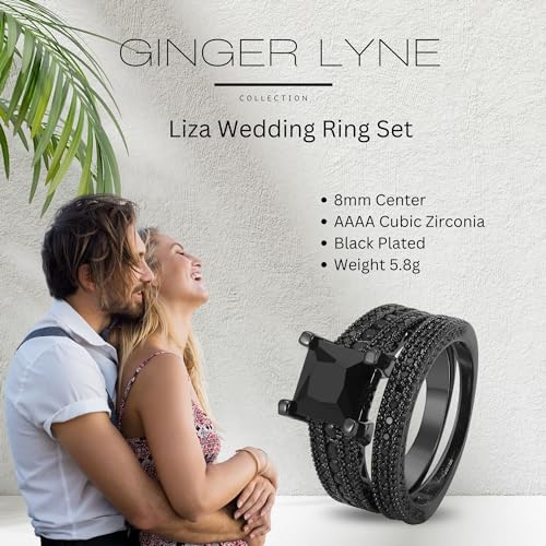 Liza Black Wedding Ring Set for Women by Ginger Lyne | Gothic Cubic Zirconia Simulated Black Diamond Engagement Ring for Her | Half Eternity Wedding Band for Women | Bridal Jewelry for newly-released-age Bride